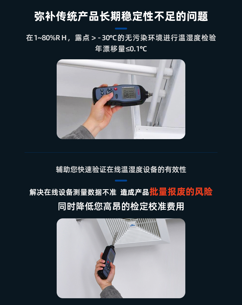 ●長期穩(wěn)定性:?年漂移量≤0.1°C(在無污染環(huán)境進(jìn)行溫濕度檢驗